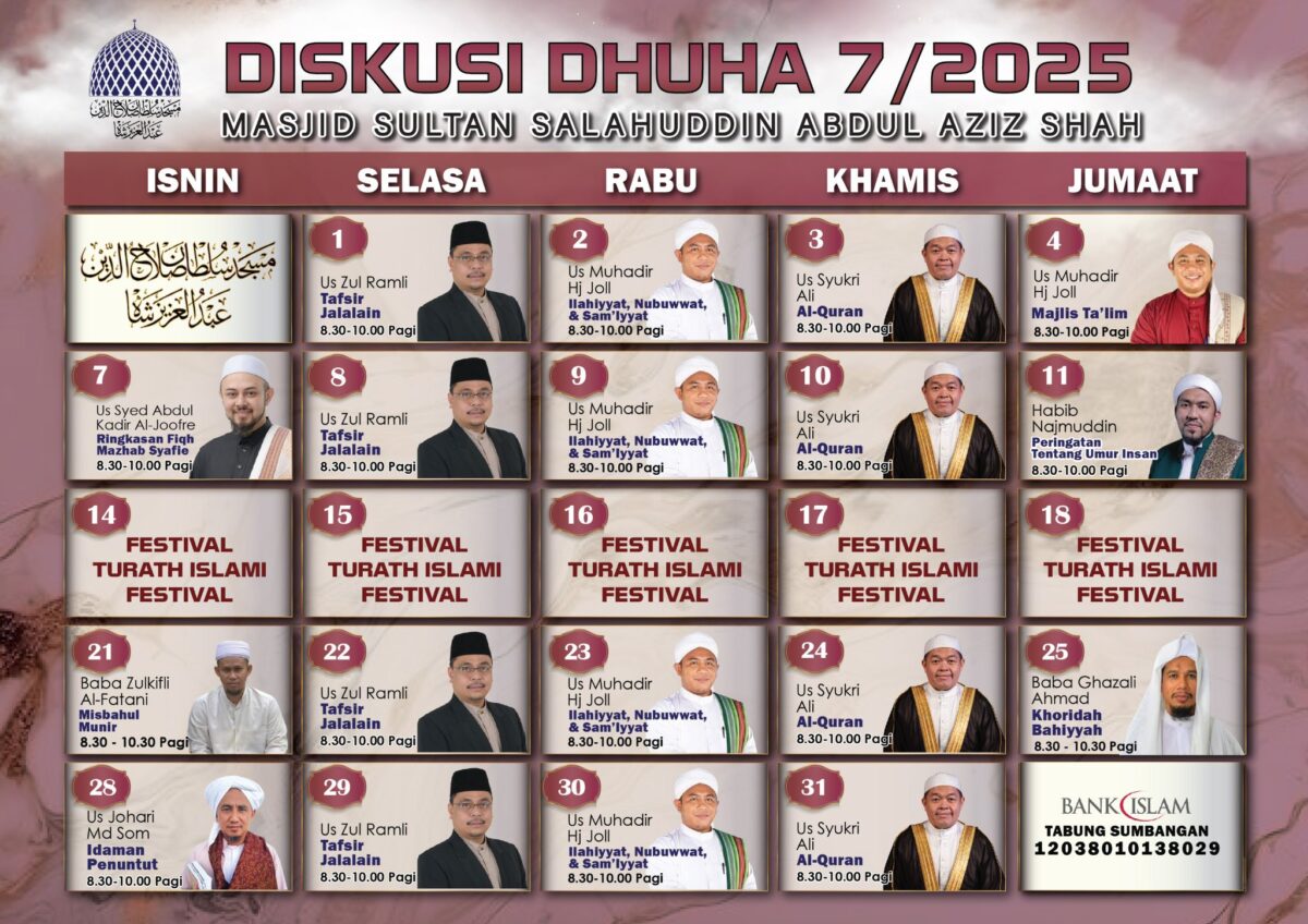 MAJLIS IBADAH KORBAN 1446HTue 14 Dhul Hijjah 1446AH 10-6-2025ADFESTIVAL TURATH ISLAMI SELANGOR 3.0 2025Thu 15 Muharram 1447AH 10-7-2025AD Published by databoltadmin on Thu 15 Muharram 1447AH 10-7-2025AD Categories Pengumuman Tags Share0 databoltadmin Related postsMon 21 Rabi Al Thani 1447AH 13-10-2025ADMAJLIS HAFAZAN AL-QURAN DENGAN QIRAAT PERINGKAT NEGERI SELANGORRead moreMon 21 Rabi Al Thani 1447AH 13-10-2025ADJADUAL KULIAH UMUM & DISKUSI DHUHA BULAN OKTOBER 2025Read moreWed 18 Rabi Al Awwal 1447AH 10-9-2025ADJADUAL KULIAH UMUM & DISKUSI DHUHA BULAN SEPTEMBER 2025Read more Leave a Reply Cancel replyYour email address will not be published. Required fields are marked *Comment * Name * Email * Website Save my name, email, and website in this browser for the next time I comment. Δ